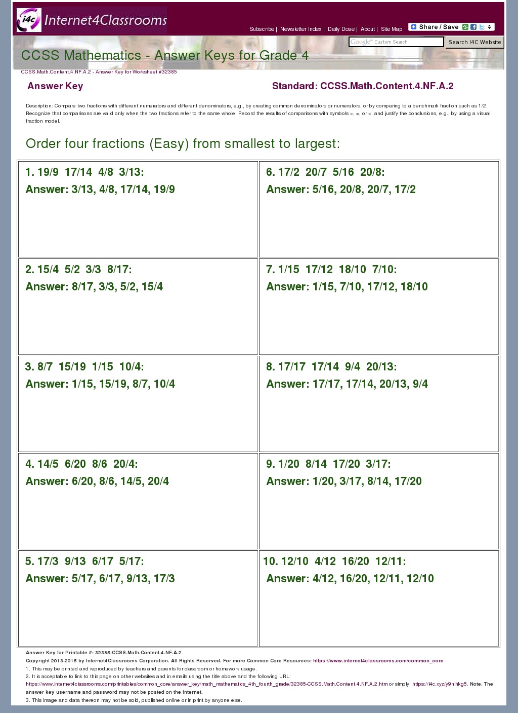 for "Answer Key For Zearn 4Th Grade / Answer Key Download - Worksheet #31297. CCSS.Math.Content.4.NF.A.2"